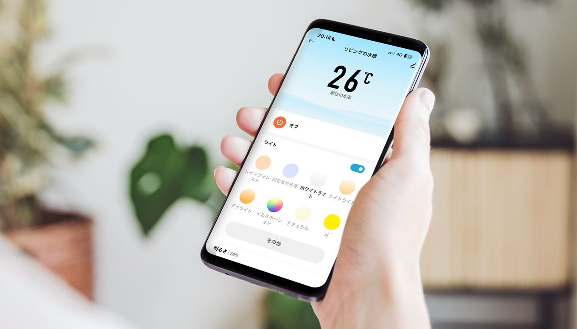 専用の「スマートライフ+」アプリをダウンロードすることで水槽に搭載されている機能をすべて遠隔操作をすることができます。
